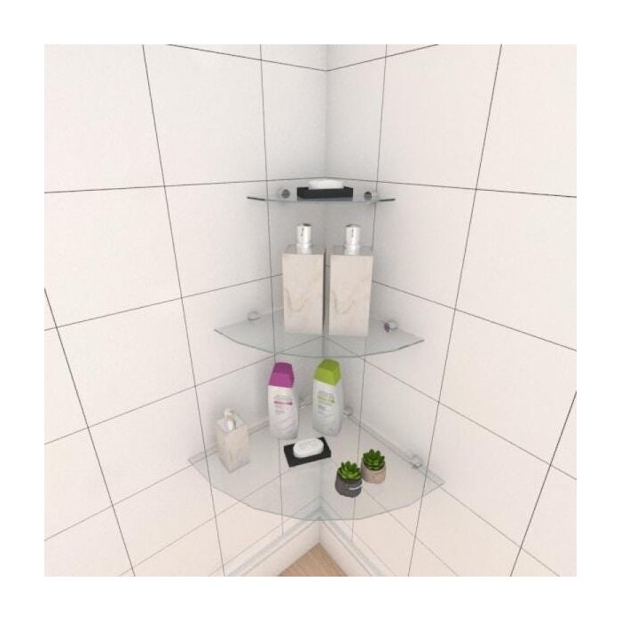 Kit com tres Prateleira para banheiro de canto 40 30 e 20 cm vidro temperado