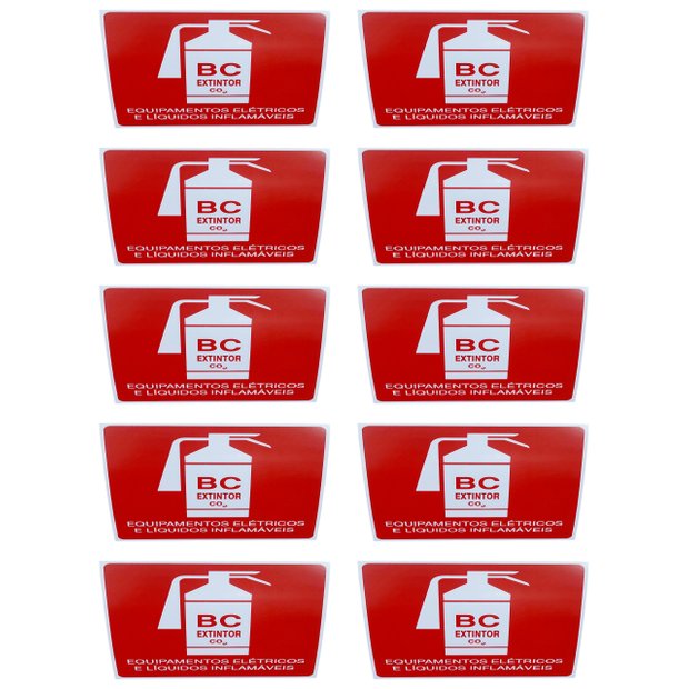 Kit Combo 10 Placa de Sinalização Extintor Bc C02 20x20 Cm Branco