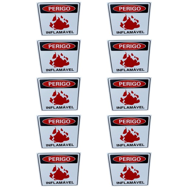 Kit Combo 10 Placa de Sinalização Perigo Inflamavel 20 X 30