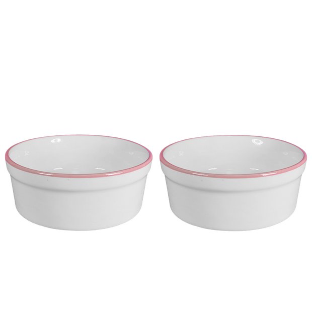 Kit Comedouro e Bebedouro de Porcelana 300ml Borda Rosa Rosa