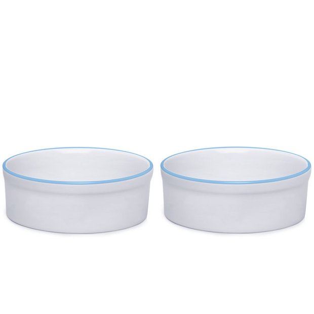 Kit Comedouro e Bebedouro de Porcelana 600ml Borda Azul Azul