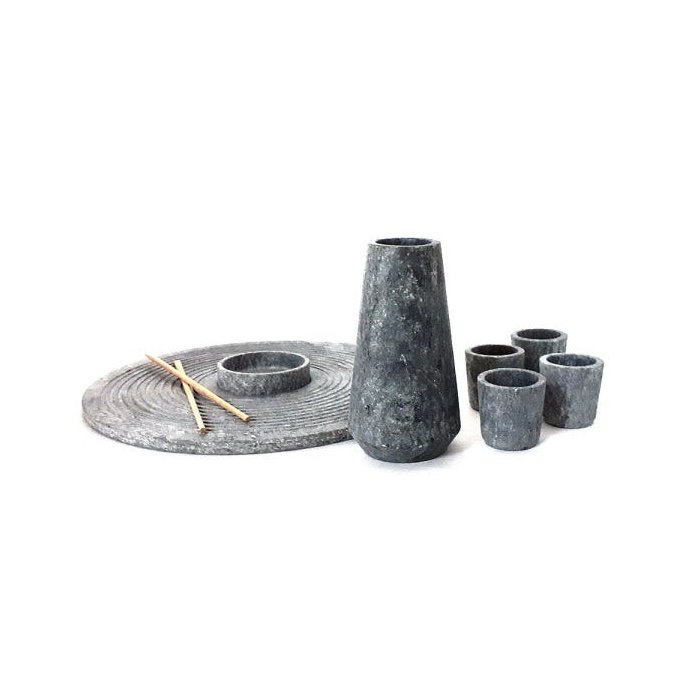 Kit Comida Japonesa em Pedra Sabão - Prato para Sushi + Tokkuri para Saké