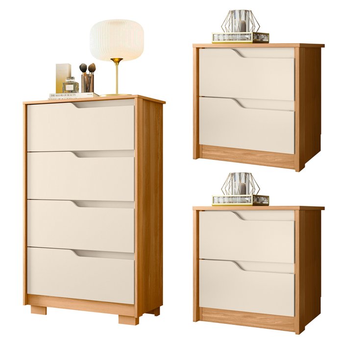 Kit Cômoda Sole Com 2 Mesas de Cabeceira Doble Carvalho Grife/Off White - Albatroz