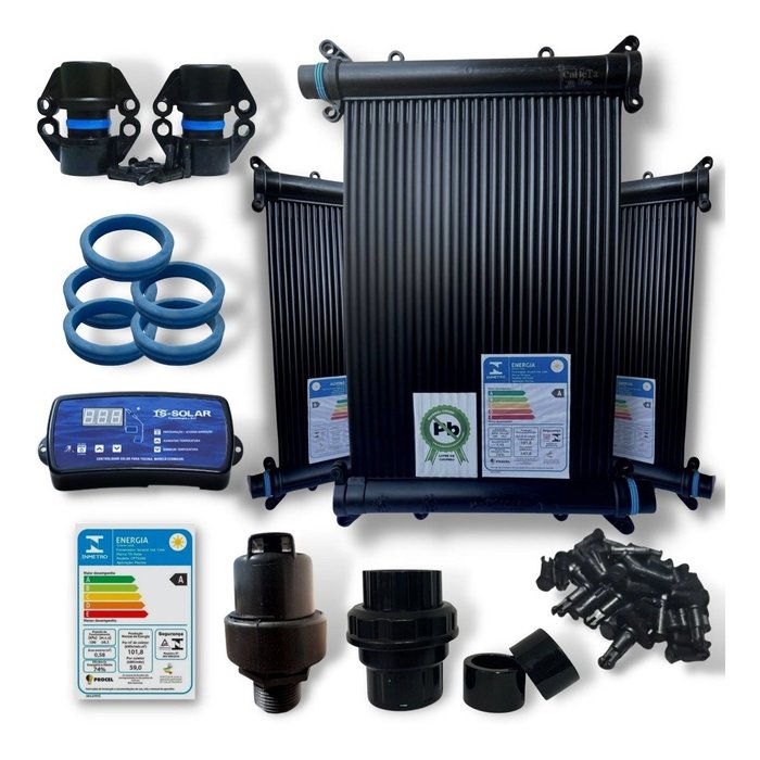 Kit Completo - Aquecedor Solar Piscinas - 24 Placas 3 mt - 21,5m² / 30.000 Litros