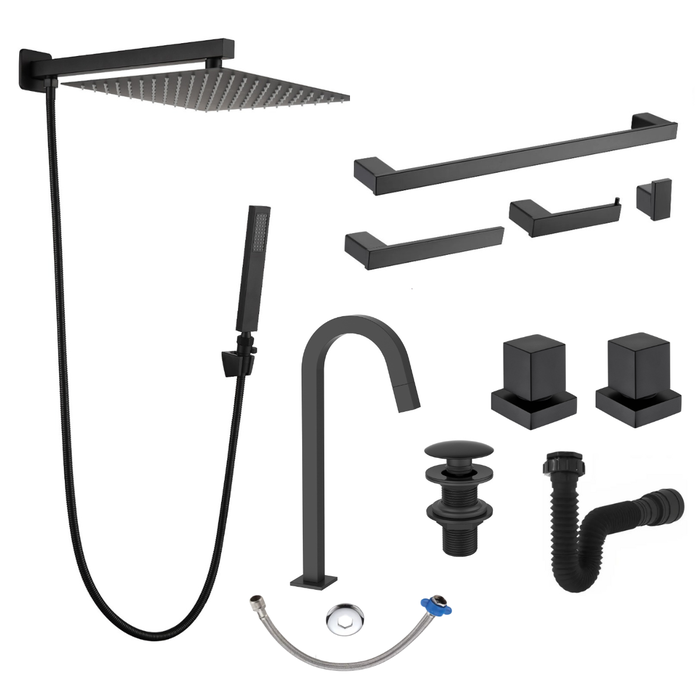 Kit Completo Banheiro Lavatório com Acessórios e Acabamentos para Registro Padrão Deca Preto Premium Preto Fosco