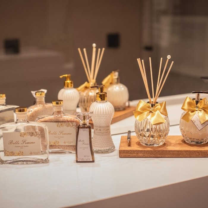 O Kit completo da linha Belle Femme, foi montado com produtos pra você ter os melhores momentos relaxantes durante o banho, mais o creme que deixa a pele hidratada e com um perfume marcante e ainda, a sua casa com um cheiro marcante e inconfundível!