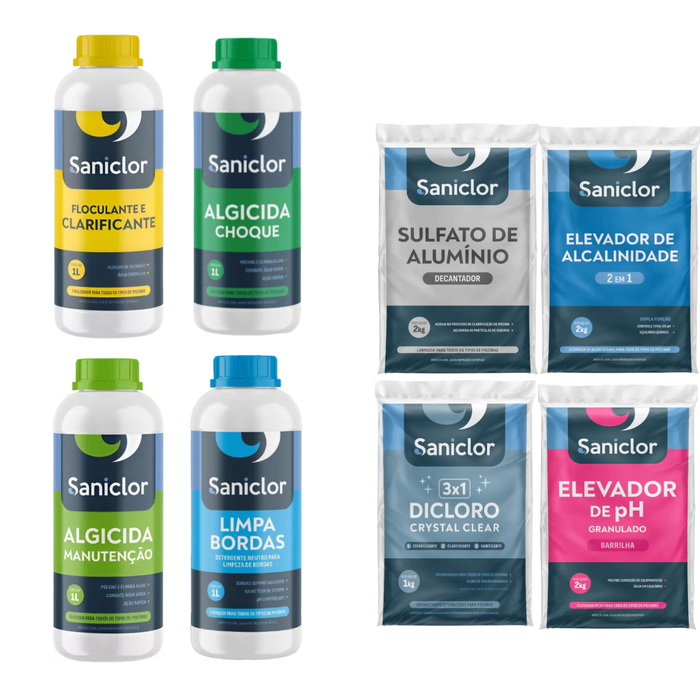Kit Completo Saniclor para Manutenção de Piscinas – Dicloro, Algicida, Clarificante e Mais!