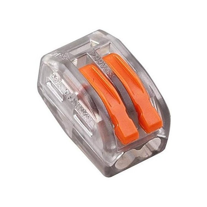 Projetado para emendas de fios rígidos ou flexíveis, este é o conector mais indicado quando se quer emendar uma quantidade grande de fios. Para fazer a emenda, basta levantar a alavanca, inserir os fios (desencapados) nos furos do conector e fechar a alavanca.