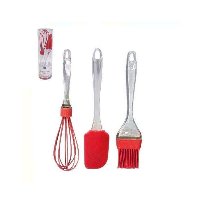 Kit Confeiteiro com Espátula Pão Duro / Pincel Culinário / Batedor Claras Cabo Acrílico no Tubo - Ve Vermelho
