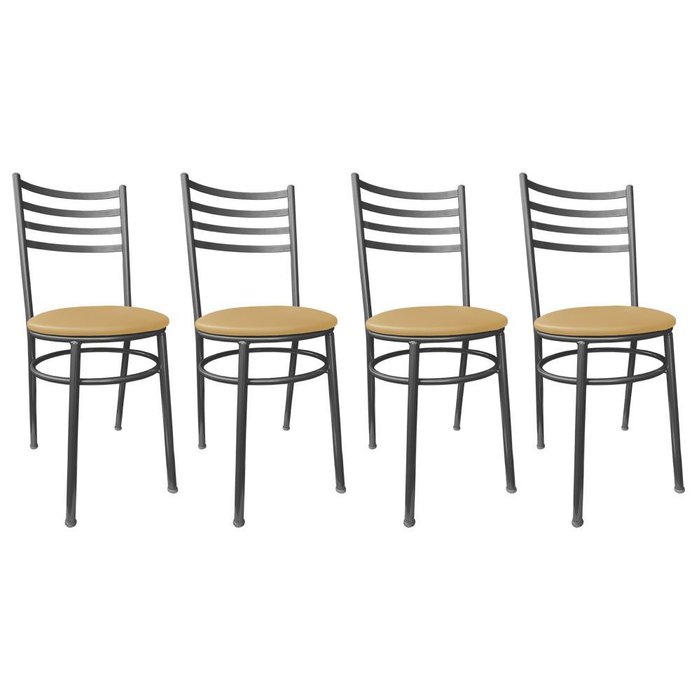 Kit Conjunto 4 Cadeiras para Cozinha Mesa Jantar Bar Lanchonete Restaurante Preta Estofado Bege