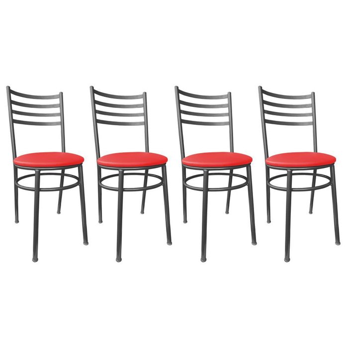 Kit Conjunto 4 Cadeiras para Cozinha Mesa Jantar Bar Lanchonete Restaurante Preta Estofado Vermelho