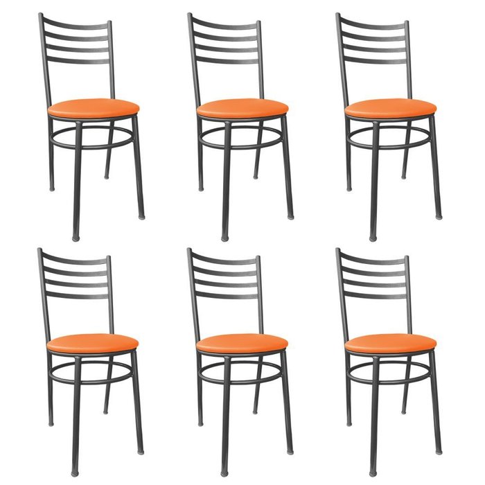 Kit Conjunto 6 Cadeiras para Cozinha Mesa Jantar Bar Lanchonete Restaurante Preta Estofado Laranja