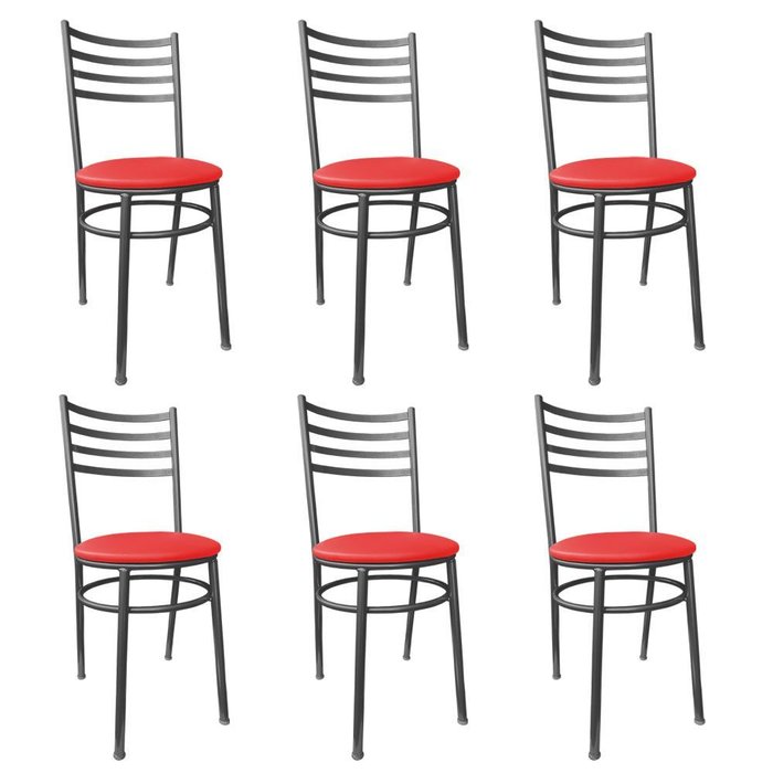 Kit Conjunto 6 Cadeiras para Cozinha Mesa Jantar Bar Lanchonete Restaurante Preta Estofado Vermelho