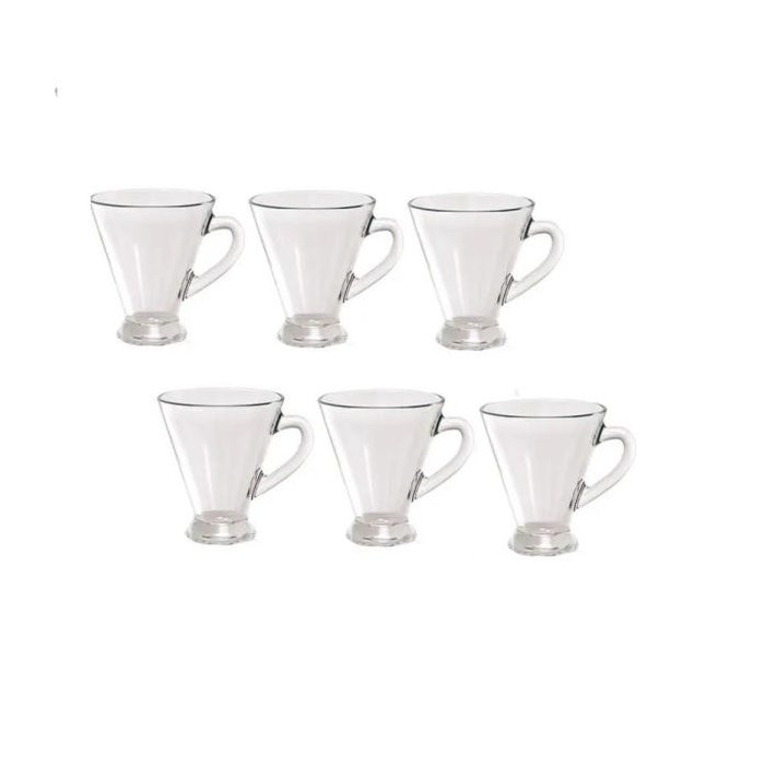 KIT CONJUNTO 6 CANECA CONICA XICARA DE VIDRO PARA CAFE CHA CAPUPPUCINO CAFE EXPRESSO MINI 110ML UNICA