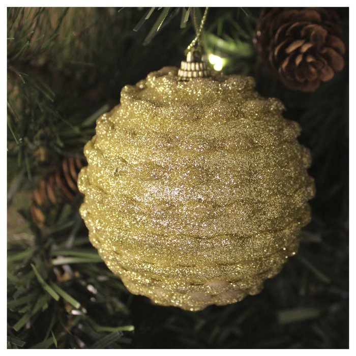 Kit Conjunto 6 Peças Decoração Enfeite Bola Árvore Natal Dourada Glitter Natalina 8,5cm -