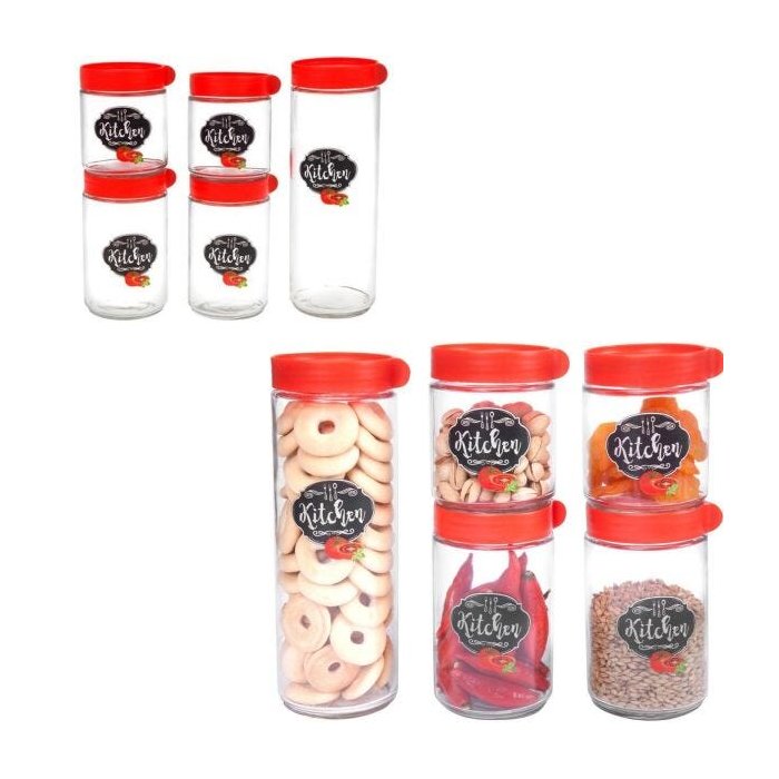 KIT CONJUNTO DE POTES HERMÉTICOS DE MANTIMENTOS DE VIDRO KITCHEN 5 UNIDADES EMPILHAVEL