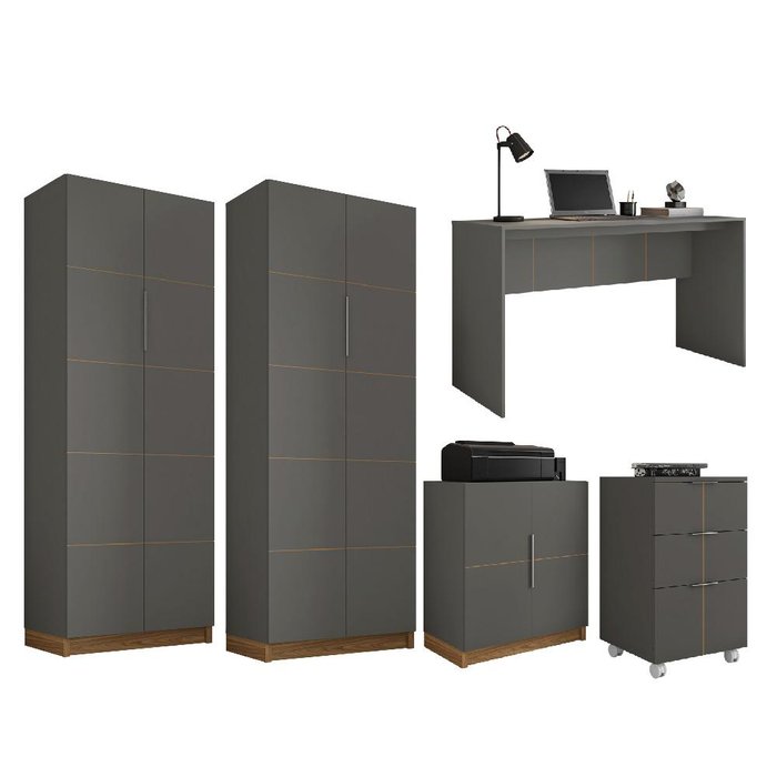 Kit Conjunto Escritório 5 Peças Cubic Cinza Caemmun Chumbo / Louro Freijo