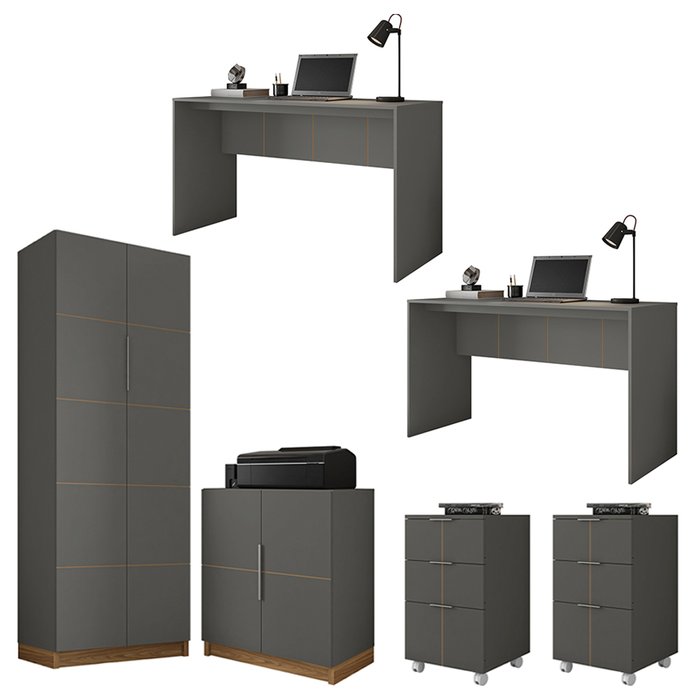 Kit Conjunto Para Escritório 6 Peças Cubic Cinza Caemmun Chumbo / Louro Freijo