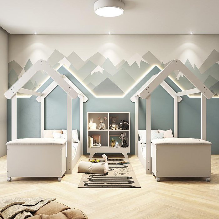 Quarto completo estilo montessoriano com Minicamas, Baús e Estante. As Minicamas Montessorianas contribuem de forma lúdica estimulando no desenvolvimento das habilidades cognitivas das crianças. O colchão (não acompanha o produto) fica próximo ao chão, facilitando deitar, levantar e explorar o ambiente. Suas bordas são arredondadas e laqueadas, fundamental para segurança. Os Baús com amplo espaço interno, tampo com estofamento capitonê em tecido corino, 04 rodízios (sendo 02 com travas) e abertura feita por pistão a gás e dobradiças metálicas. A Estante Retrô com 4 nichos conta com sistema antitombamento, podendo ser utilizado para organização e colocar brinquedos que fiquem ao alcance da criança, completando o estímulo proposto pelo estilo Montessoriano. Produzidos em 100% MDF. Especificações Baú - Comprimento: 68,5 cm - Largura: 36,5 cm - Altura: 48,5 cm - 2 Unidades - 1 Porta com estofamento capitonê - 4 Rodízios (2 com trava) Especificações Mini Cama - Comprimento: 157,4 cm - Largura: 96,6 cm - Altura: 150 cm - 2 Unidades - Não acompanha Colchão Especificações Livreiro - Comprimento: 75,2 cm - Largura: 30,3 cm - Altura: 80 cm - 1 Unidade - 4 Nichos - Cor: Branco - As configurações do seu monitor ou dispositivo móvel podem afetar a tonalidade da cor do produto. Conferir na descrição. - Recomendação de Limpeza: Limpar com pano seco para retirar o pó. Não aplicar produtos abrasivos. - Produtos de Enfeite e Eletrônicos Não Estão Inclusos.