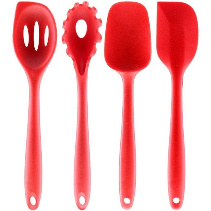Kit Conjunto Utensílios Para Cozinha Vermelho Silicone 4 Peças -