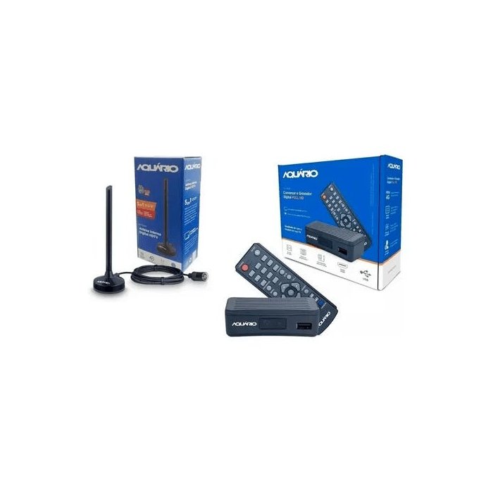 Kit Conversor Digital DTV 4000 + Antena DTV 100P HDTV Aquario