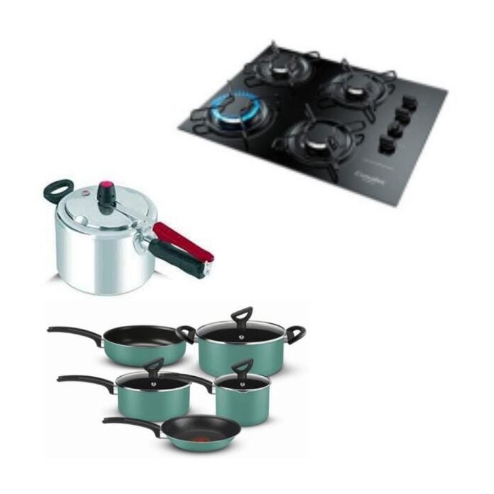 Kit Cooktop 5 Panelas Rochedo E Panela Pressão 4,5L Clock