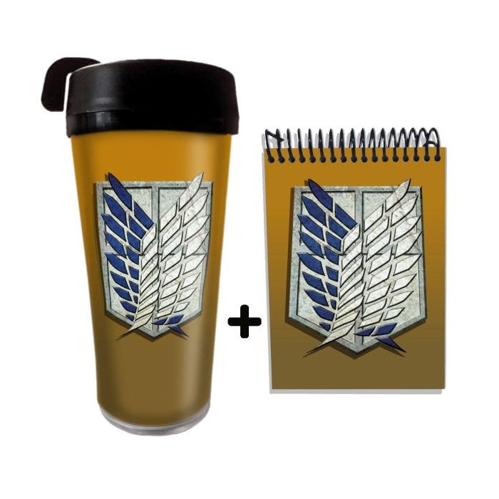KIT Copo 500ml Anime Shingeki no Kyojin Tropa e Caderneta