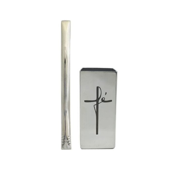 Kit Copo Cuia Tereré de Inox Quadrado + Bomba Inox Chata Lisa Cano Grosso 21cm - Fé