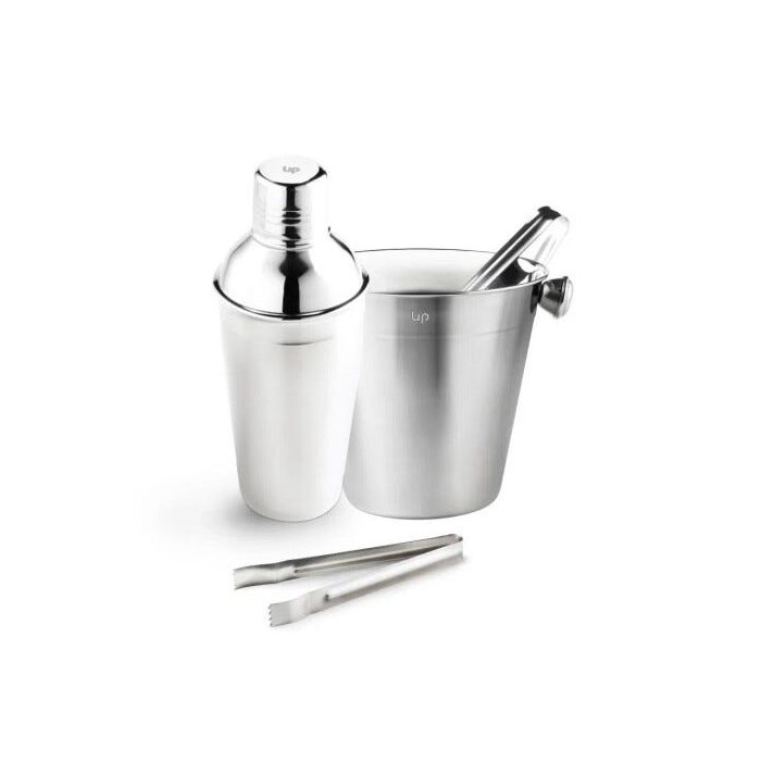 Kit coqueteleira 500ml e balde de gelo 1,5l com pegador aço inox Up Home