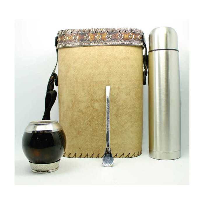 Kit Coquinho Preteado Pé Metal Uruguaio /Térmica 1L / Bomba Inox 19 cm / Mateira Recouro