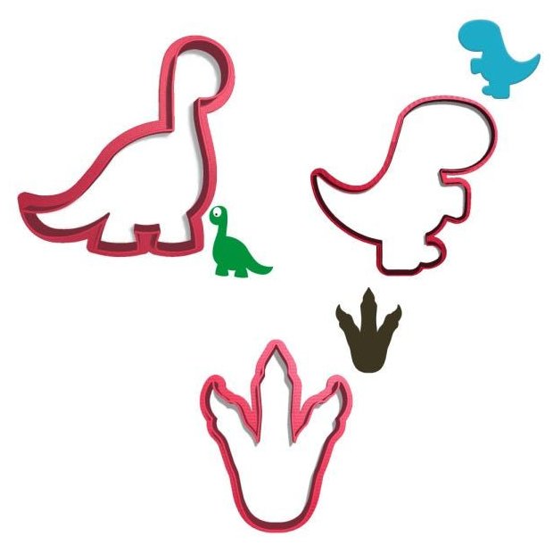 * Modelo: KIT CORTADOR DOCE IMPRESSO PASTA AMERICANA FESTA INFANTIL DINOSSAURO BABY DINO TREX PEGADA 3 PÇ