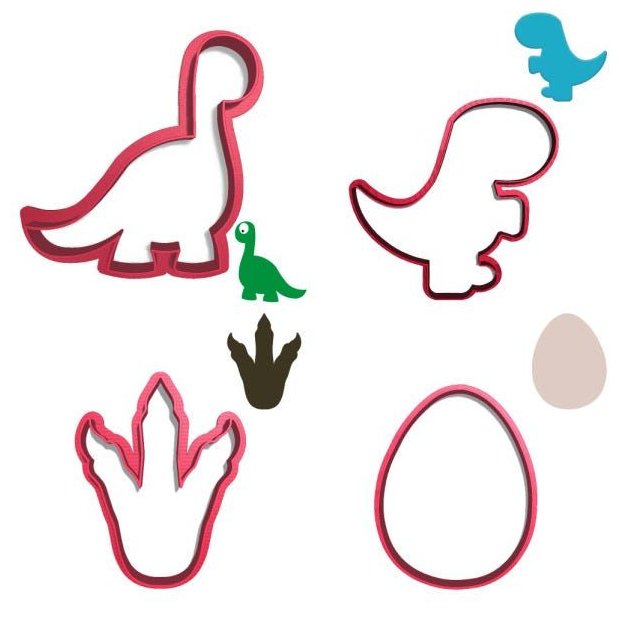 * Modelo: KIT CORTADOR PASTA AMERICANA BISCOITO INFANTIL DINOSSAURO BABY CUTE PESCOÇO TREX PEGADA OVO 4PC