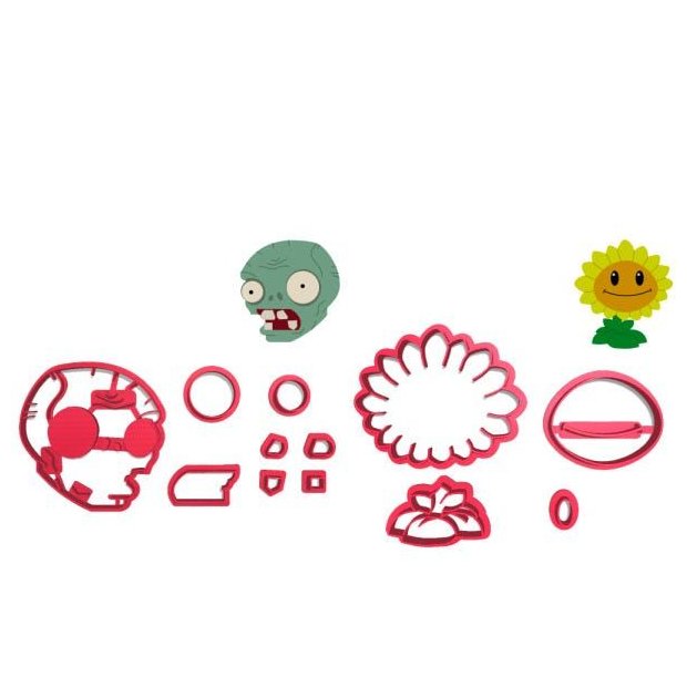 * Modelo: Kit Cortadores Pasta Americana Plantas vs Zumbis com Cabeça do Zumbi e Planta Flor 2pc