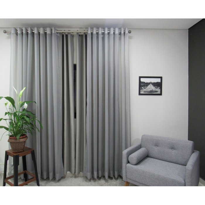 Kit Cortina Blackout + Voil P/ Varão Duplo de Até 3,00mts (larg) x 2,60(alt) Cinza Cinza