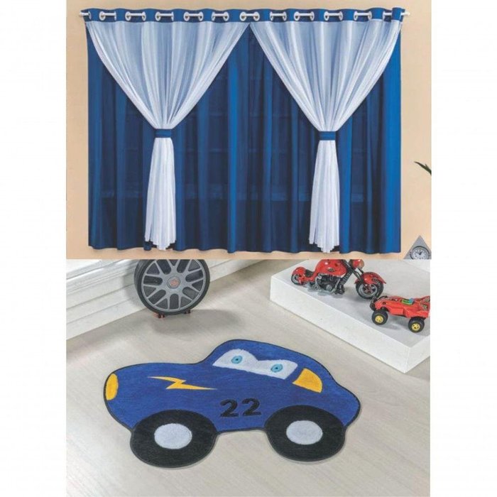 Kit Cortina Filó 2 Metros + Tapete Carrinho Royal Azul Royal
