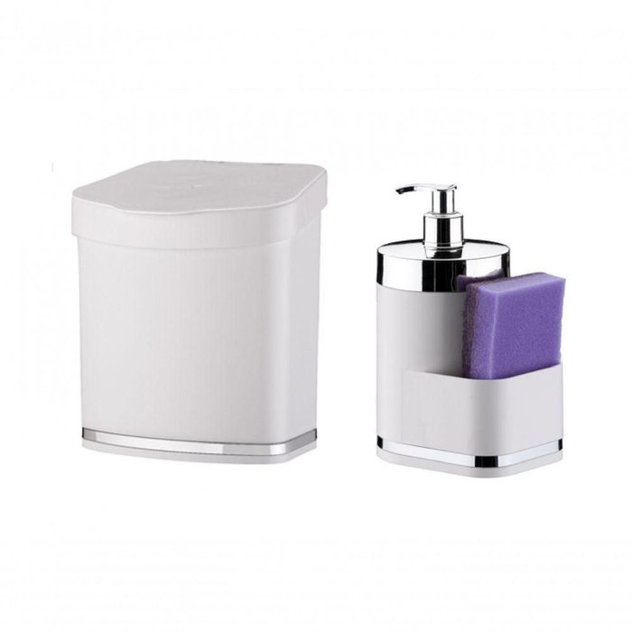Kit Cozinha 2 Peças Branco Future Lixeira e Porta Detergente Esponja