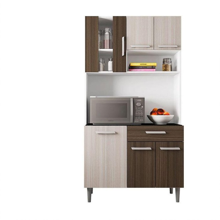 O Kit Cozinha 6 portas 1 gaveta Carol da Poliman Móveis destaca-se por sua praticidade e eficiência de uso, podendo ser utilizado em qualquer ambiente ou até mesmo como complemento de cozinha. Possui 1 porta com detalhe em vidro além de mais 05 portas proporcionando amplo espaço interno, 01 gaveta com corrediças metálicas, espaço para eletrodomésticos, nicho organizador decorativo, puxadores em polímero, pés fixos, produto 100 MDP. Está disponível em padrões de cores que combinam com os mais variados ambientes. Qualidade que só a Poliman oferece em seus produtos.