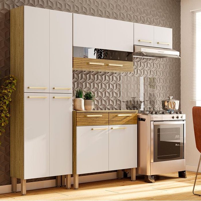 Composta por armários, gavetas, prateleiras, balcão para pia, oferece tudo o que é necessário para ter uma cozinha completa.