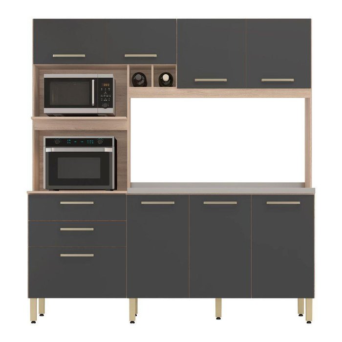 Kit Cozinha Compacta Com 8 Portas E 2 Gavetas Para Pia Hera Avena Grafito Demóbile Kit Cozinha Compacta Com 8 Portas e 2 Gavetas Para Pia Hera Avena Grafito Demóbile