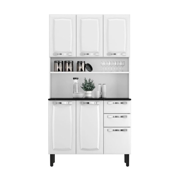 Com um armário de 1,05 m de largura, 1,96 m de altura e 45 cm de profundidade, você terá espaço suficiente para guardar seus utensílios e mantimentos. Além disso, ela oferece a opção de um nicho para decoração ou para colocar condimentos, o que torna o ambiente ainda mais funcional e agradável.