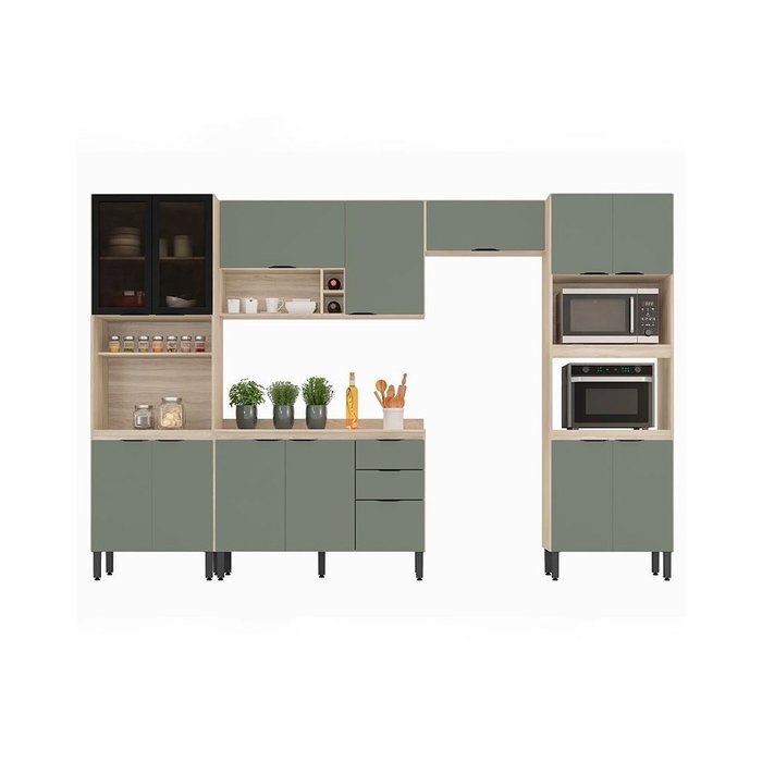Kit Cozinha Completa 5 Peças Firenze com 2 Portas de Vidro:avena/menta