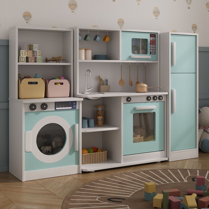 Kit Cozinha de Brinquedo Completa Feita de Mdf com Geladeira e Maquina de Lavar MENTA