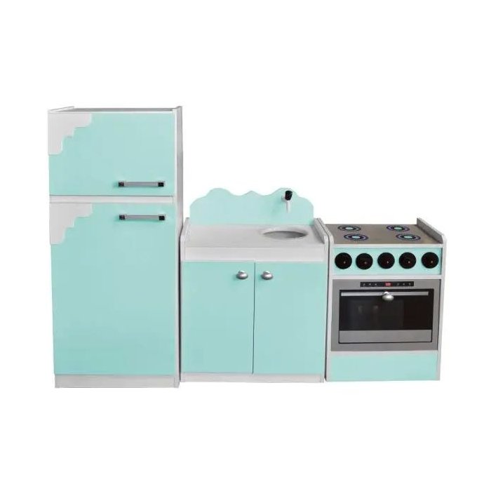 Descrição do Produto: Kit Cozinha de Brinquedo Infantil 03 Peças Verde Água/Branco - Criança Feliz o sonho da sua menininha de ter a sua própria cozinha chegou! Esse kit acompanha com Pia, Fogão e Geladeira para completar a diversão da sua filha. Ideal para brincadeira ficar mais realista e a imaginação fluir, este brinquedo é educativo e inspirador podendo inspirar sua princesa em querer ser uma excelente chef de cozinha igual a Mamãe e o Papai. A brincadeira com certeza vai ficar completa com esse kit, Aproveite agora e leve já o seu, pois sua filha vai amar! Dimensões do Produto: Geladeira: Largura: 43cm Altura: 99cm Profundidade: 32cm Fogão: Largura: 41cm Altura: 54cm Profundidade: 28cm Pia: Largura: 51cm Altura: 67cm Profundidade: 28cm Características do Produto: Estrutura: 100% MDF; Pintura: Esmalte a Base d'água com Brilho; Observação: Não é possível fazer instalação de água na Torneira da Pia; Instruções/Cuidado: Deve ser colocado em espaço interno e coberto, não é recomendável ficar no tempo; Necessita de Montagem: Sim, porém acompanha manual e todos os acessórios para montagem; Observações importantes: - As imagens são meramente ilustrativas e não acompanham objetos de decoração e eletros. - Pode haver alguma diferença de tonalidade entre a imagem e o produto, por conta do tratamento de imagens e a calibração de cores da sua tela. - Todos os nossos produtos são enviados devidamente embalados e com total segurança. - Ao receber o produto o cliente deve verificar as condições da embalagem, havendo alguma avaria não assine o comprovante de recebimento, entre em contato com a loja para orientações. - A nossa loja se responsabilizará pela entrega dos produtos adquiridos até a porta de entrada ou portaria do endereço indicado. - Não nos responsabilizamos, no ato da entrega, por montagens, desmontagens e instalações de produtos, bem como, por subir ou descer escadas/elevadores ou pela utilização de guinchos ou equipamentos similares para acesso a pisos superiores em apartamentos, casas ou escritórios. Estas despesas adicionais serão de responsabilidade do cliente. - Confira as dimensões do produto no momento da compra e certifique-se de que passará normalmente por elevadores, portas, escadas e/ou corredores, evitando assim futuros desagrados ou imprevistos com a entrega do produto.