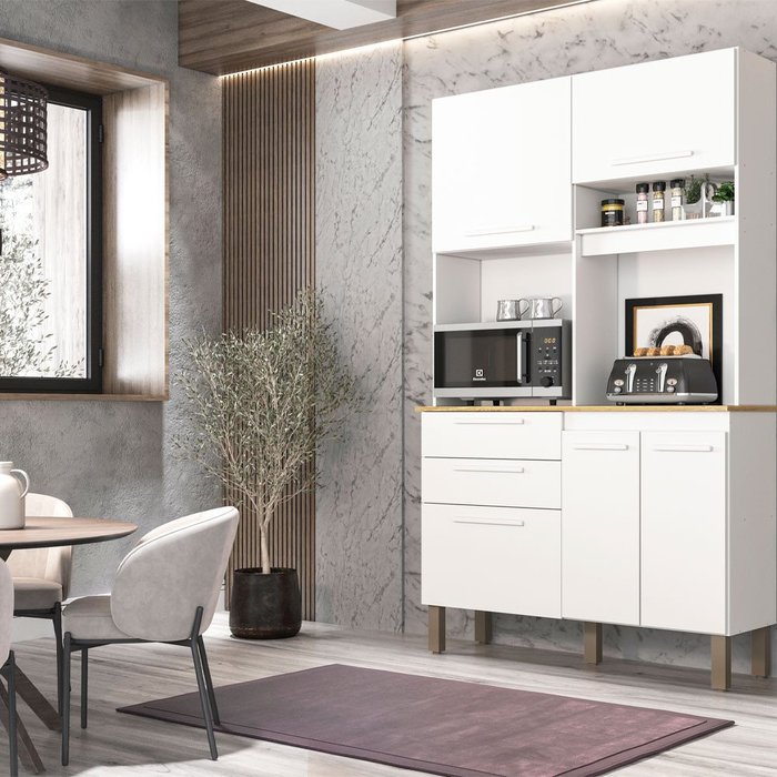 Kit Cozinha Dubai 5 Portas 2 Gavetas Nicho SallêtoO Kit de Cozinha Dubai é perfeito para deixar tudo ainda mais organizado. Compacto e cheio de estilo ele possui espaço para micro-ondas e demais eletroportáteis deixando tudo mais funcional. Disponível em várias cores, ele conta com nichos para decoração e prateleiras que vão te auxiliar na organização. As gavetas do Kit de Cozinha Dubai são em corrediça telescópica o que proporciona melhor abertura e aproveitamento do espaço. Além disso, os puxadores são em madeira oferecendo mais resistência e modernidade. A pintura touch deixa seu móvel ainda mais lindo.Informações técnicas:Linha: Kit Cozinha DubaiVolumes: 1Marca: Sallêto Móveis Estilo: ModernoOrigem do produto: NacionalMatéria-prima da estrutura: MDPEspessura das chapas: 12mmEspessura do tampo: 15mmMaterial do Fundo: MDFEspessura dos Fundos: 3mmAmbiente principal: CozinhaAcabamento: UVDe canto: NãoPossui pés: SimQuantidade de pés: 5Altura dos pés: Possui regulagem de alturaPossui portas: SimQuantidade de portas: 5Tipo de portas: BaterMatéria-prima da porta: MDPEspessura das portas: 15mmTipo de puxador da porta: ExternoMatéria-prima dos puxadores: MadeiraTipo de dobradiça: MetálicaPossui prateleiras: SimQuantidade de prateleiras: 4Matéria-prima da prateleira: MDPEspessura das prateleiras: 12mmPossui nichos: SimPossui gavetas: SimQuantidade de gavetas: 2Espessura das chapas: 15mmTipo de gaveta: ExternaTipo de corrediça da gaveta: TelescópicaRecomendações de uso/manutenção: Limpar com flanela limpa e seca. Não usar produtos abrasivos.Itens inclusos: 1 Kit Cozinha e Manual de MontagemDimensões:Altura: 193,5 cmLargura: 109 cmProfundidade: 36,5 cmPeso: 47,5 kgGarantia do fabricante: 3 MesesInformações sobre o fabricante:Fundada no ano de 2002, a Sallêto Móveis, uma empresa ubaense, destaca-se no cenário nacional com a produção de móveis para cozinha e dormitório. São anos de dedicação, sempre buscando levar aos lares brasileiros o bem-estar, através de móveis produzidos com excelência.Observações Montagem:Necessita montagem: SimAcompanha manual de instalação: SimSistema de montagem: Parafusos, pregos, cavilhas, corrediçaComplexidade da montagem: Média sugerimos a presença de um profissional capacitado.