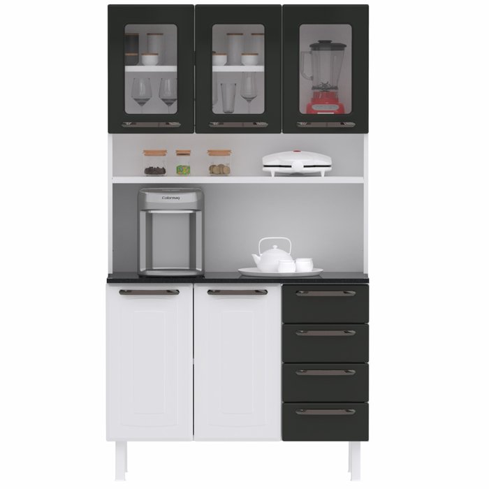 KIT Cozinha em Aço Colormaq Titanium 05 portas 04 gavetas com vidro – Branco/Grafite