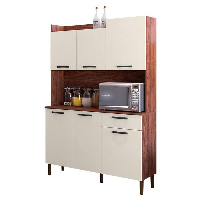 Kit Cozinha Gênova 6 Portas Nogueira Off White - Kits Paraná Nogueira Off White