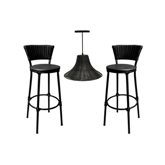 1 Pendente Chapeu Chines Junco Cuba, 2 Banquetas Cuba Assento Preto