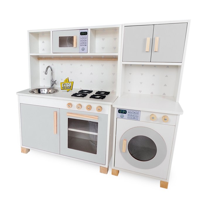 Kit Cozinha Infantil e Máquina de Lavar Infantil Eita Casa Perfeita Cinza