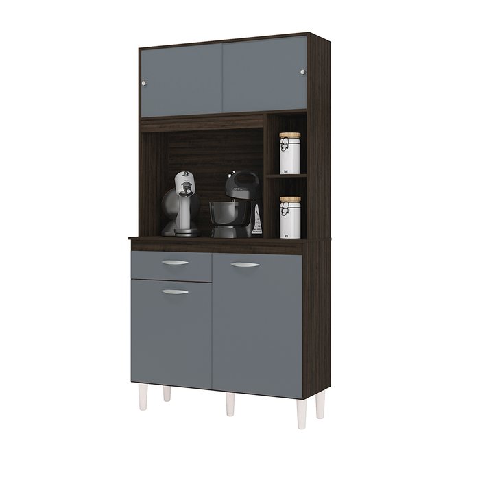 Kit Cozinha Lantana 90cm 4 Portas Chocolate/ Cinza Platinum