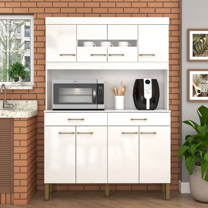 Kit Cozinha Laura 120cm 8 Portas 2 Gavetas Branco